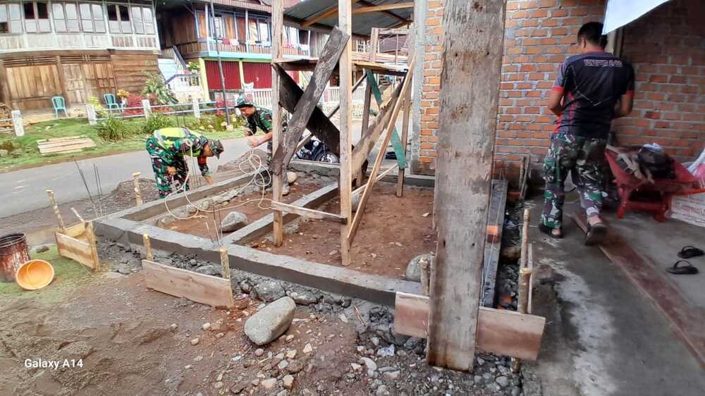 EMPAT LAWANG, (UtamaPost) – Adukan semen pada rangkaian besi untuk pondasi bagian bawah bangunan Poskamling mengeras, kini papan sebagai wadah pengecoran telah dilepas agar dapat dilanjutkan pekerjaan lainnya.