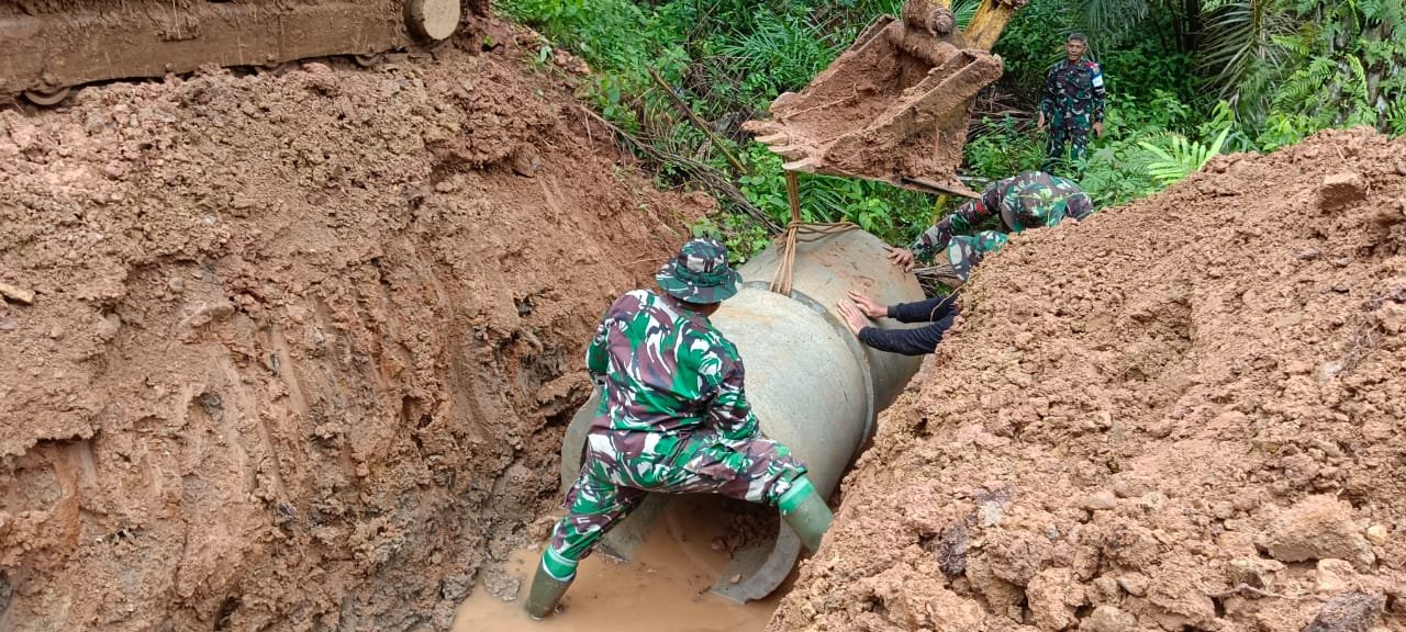 Mukomuko (UtamaPost)-Anggota Satgas TMMD Ke-119 Kodim 0428/Mukomuko terus berupaya bersama warga memperbaiki infrastruktur jalan, dalam upaya kali ini. Satgas TMMD telah berhasil memasang gorong-gorong sebagai solusi multifungsi untuk menghubungkan jalur jalan serta menjaga keberlangsungan infrastruktur. Desa Lubuk Talang (Trans Lapindo) Kecamatan Malin Deman Kabupaten Mukomuko Bengkulu Senin (11/03/2024)