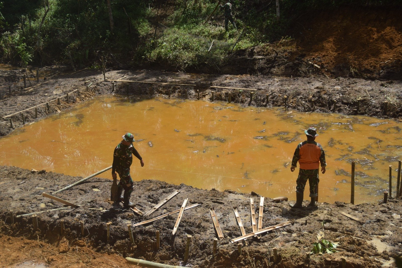 Salah satu sasaran kegiatan TMMD ke 122 kodim 0420 Sarko yakni ketahanan pangan, untuk terpenuhinya gizi masyarakat, Satgas TMMD ini membangunkan kolam ikan untuk warga.
