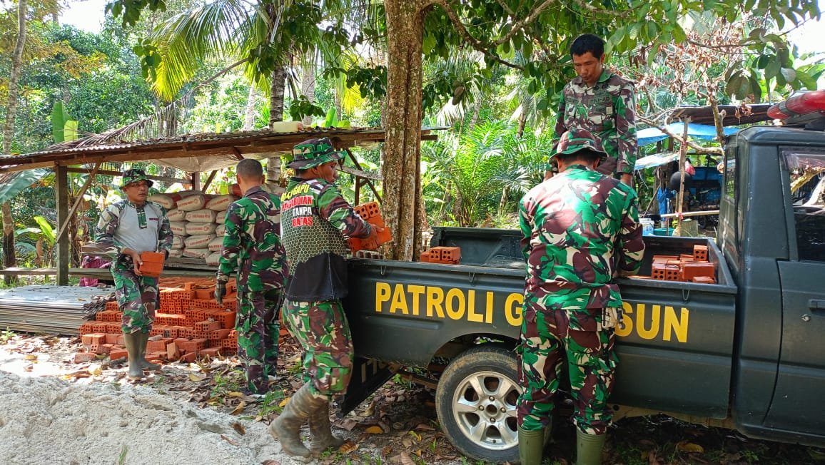 “Material-material seperti batu bata, semen, kayu, semen, pasir dan kayu ini nanti untuk pembuatan kandang kambing dan saung”jelas Kapten Sahita Selasa (8/10/2024).