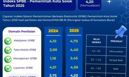 Solok, (Utamapost) – Pemerintah Kota Solok kembali mencatatkan capaian positif dalam penerapan Sistem Pemerintahan Berbasis Elektronik (SPBE). Berdasarkan hasil penilaian tahun 2025...