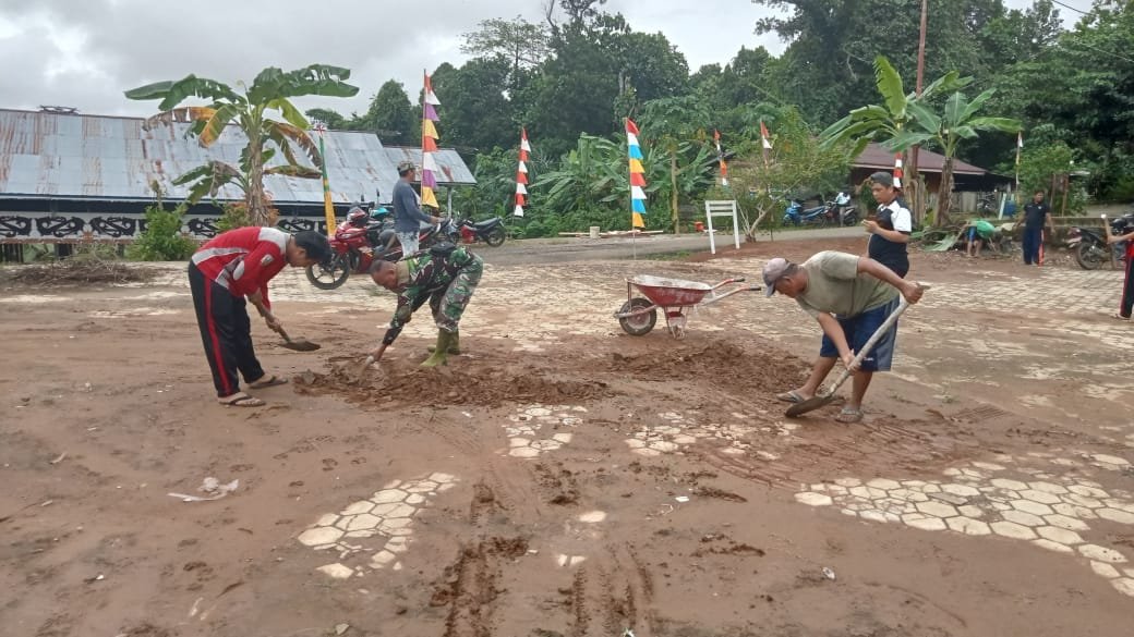 Tana Tidung – Satuan Tugas (Satgas) TMMD 122 Kodim 0914/TNT melakukan gotong royong pembersihan lingkungan bersama warga di lokasi sekitar daerah TMMD. Senin (07-10-2024)
