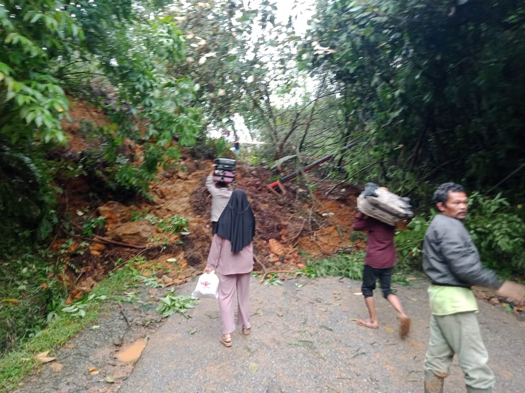 Kab. Solok, (Utamapost) – Karena intensitas curah hujan yang cukup tinggi mengakibatkan akses jalan nasional Kabupaten Solok – Kabupaten Solok Selatan mengalami longsor sepanjang 100 meter dengan ketinggian 10 meter, dan mengakibatkan jalan penghubung tersebut putus total.