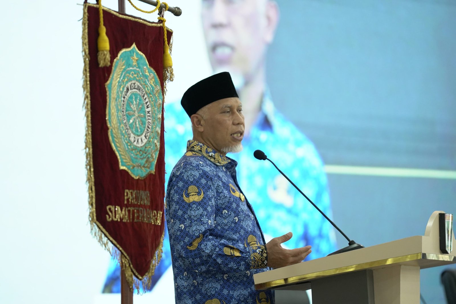 PADANG (utamapost) — Gubernur Sumatera Barat (Sumbar), Mahyeldi Ansharullah membuka Rapat Kerja Daerah (Rakerda) PKK Provinsi Sumatera Barat 2025 di Auditorium Gubernuran, Senin (17/11/2025). Dalam momentum itu, ia meminta gerakan PKK harus benar-benar hidup dan berdampak hingga tingkat nagari, kelurahan, dan desa.
