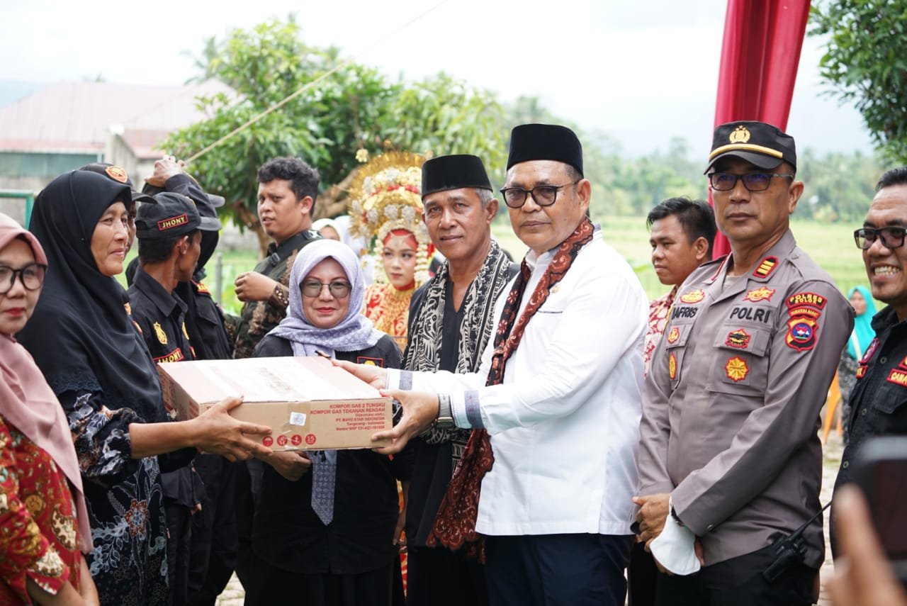 Selain menampung usulan masyarakat nagari Panyakalan, pada kesempatan tersebut Bupati Epyardi Asda juga melakukan pembagian 75 kompor gas 2 tungku untuk penggiat UMKM dan 14 unit Handy Talky untuk tenaga Linmas. (Milfiana.CP)