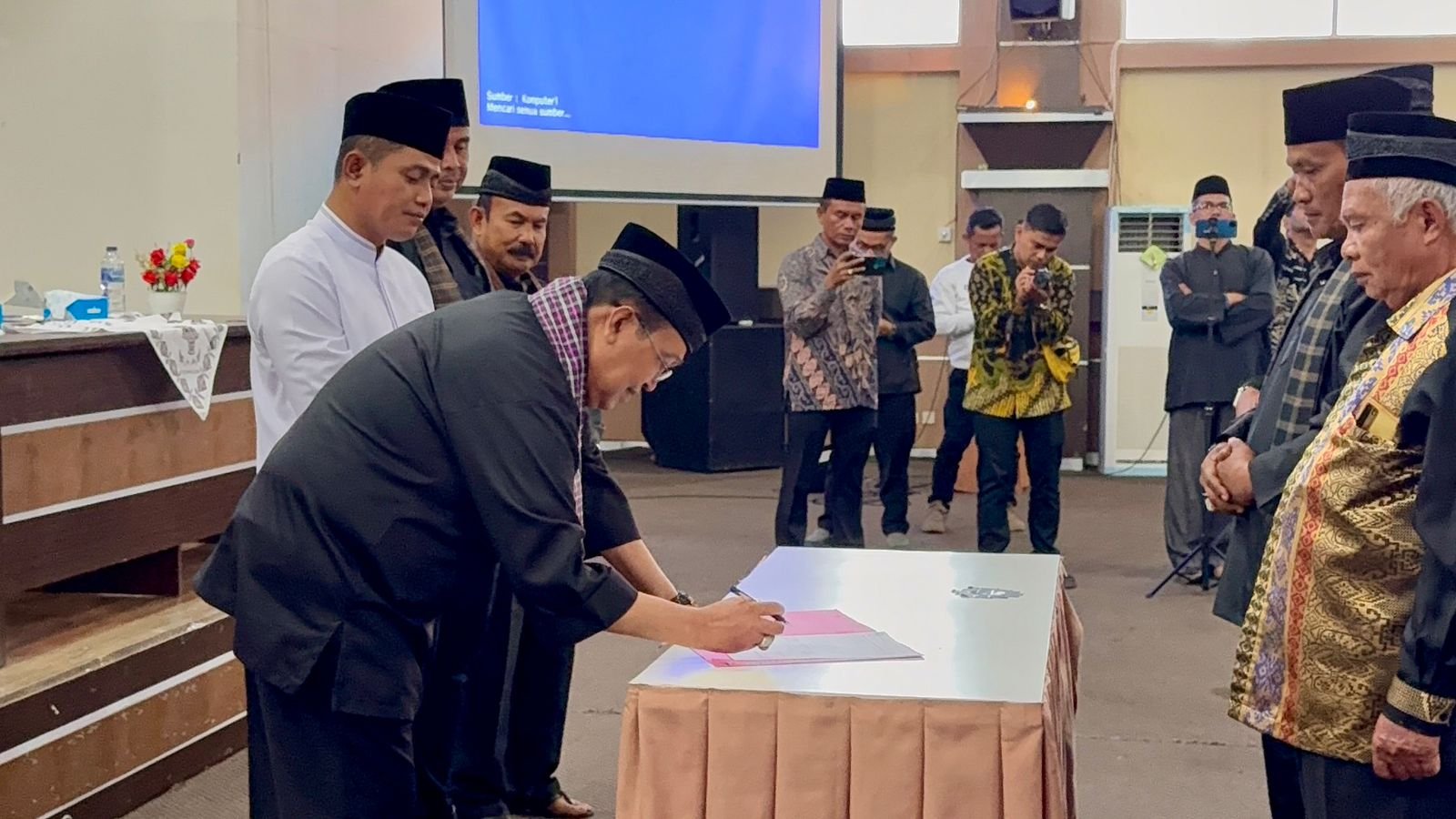 Saat pengukuhan 14 Ketua LKAAM Kecamatan se-Kabupaten Solok untuk masa bakti 2025–2030, Ketua LKAAM Kabupaten Solok, Gusmal Dt. Rajo Lelo, menegaskan pentingnya sinergi antara pemerintah daerah dan lembaga adat.