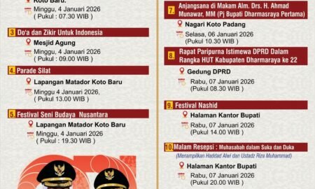 Dharmasraya (utamapost)- Pemerintah Kabupaten Dharmasraya menyiapkan rangkaian kegiatan dalam rangka memperingati Hari Ulang Tahun ke-22 Kabupaten Dharmasraya Tahun 2026 yang dikemas dengan...