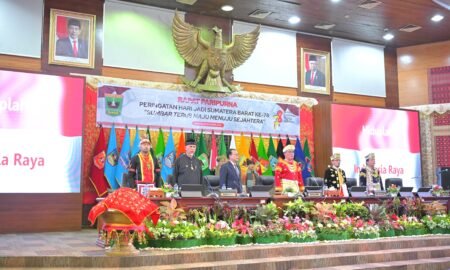 PADANG (UtamaPost)-Gubernur Sumatera Barat (Sumbar), Mahyeldi menyampaikan sejumlah capaian provinsi pada peringatan hari jadi Provinsi ke-78 di Ruang Sidang DPRD, Minggu (01/10/2023)....