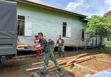 Seluma – Progres pembangunan RTLH milik Bapak Hendrik Niklas Pamtiwo pada program TMMD ke 122 Kodim 0425/Seluma masuk tahap pemasangan Kusen pintu...