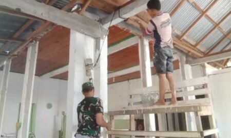 EMPAT LAWANG – Bangunan fisik Mushola Syiar Islam TMMD ke-122 Kodim Lahat terus berjalan, bahkan tak luput sejengkal pun anggota satgas melakukan plamir seluruh...