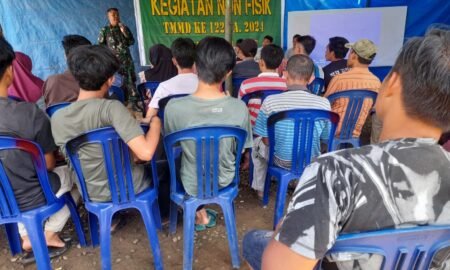 Tana Tidung – Dan SSK satgas TMMD 122/Danramil-01 Sesayap Lettu Inf. Subadi Prasetyo melaksanakan sasaran non fisik melaksanakan penyuluhan tentang wawasan kebangsaan...