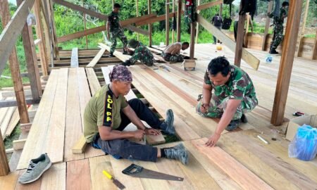 Tana Tidung – Pengerjaan sasaran fisik Rumah Tidak Layak Huni (RTLH) pada program TNI Manunggal Membangun Desa (TMMD) kepada warga sebagai penerima...
