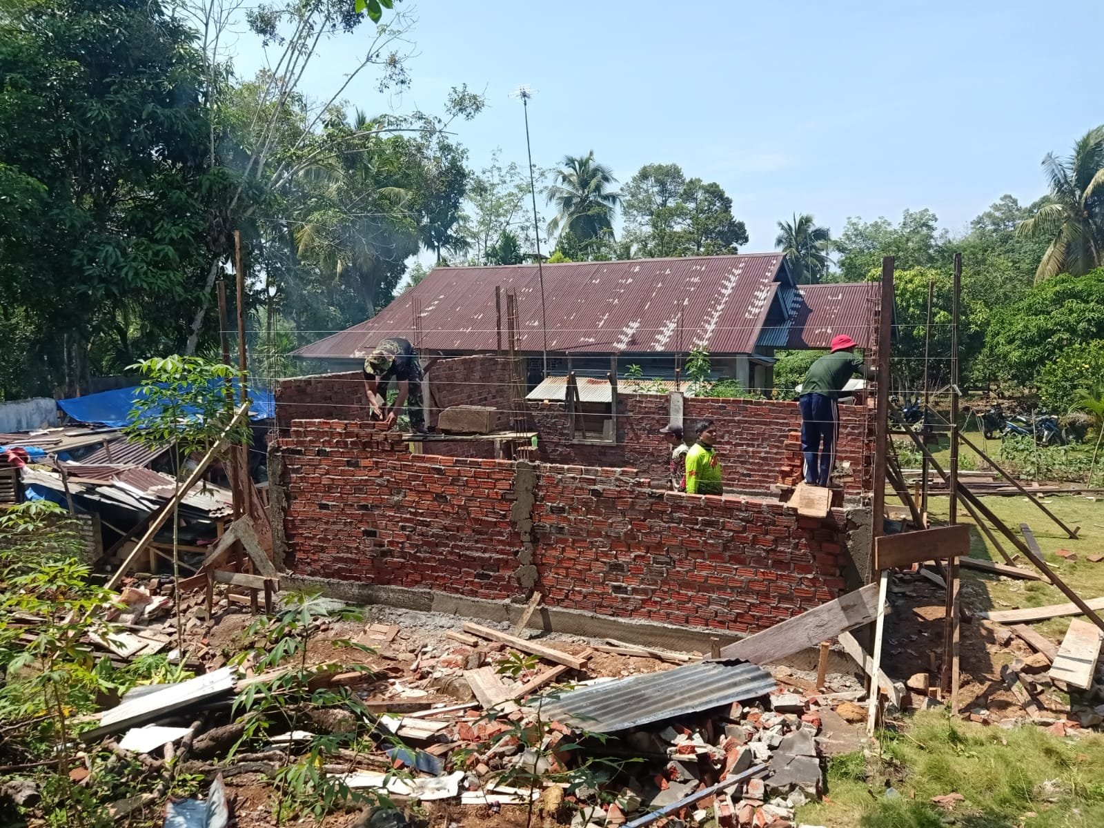 “Untuk mengejar target, kemarin bahkan kami tetap bekerja menaikkan bata, meski hujan turun, kami pakai seng untuk melindungi saat bekerja agar tidak kena air hujan,” sambungnya.