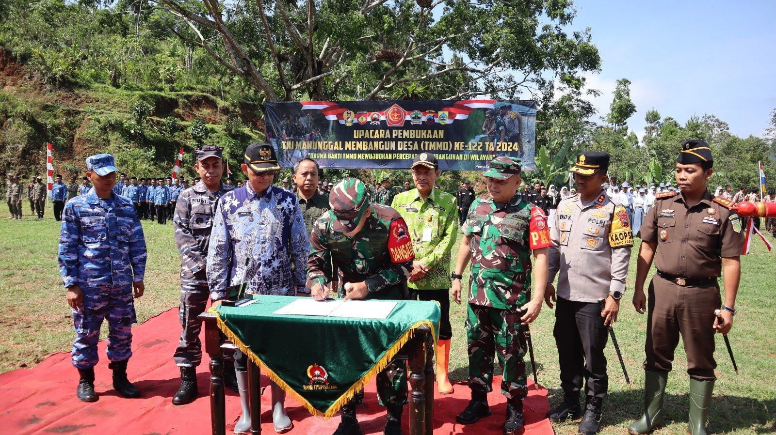 “Dengan TMMD ini, diharapkan masyarakat mempunyai daya dan upaya untuk mandiri agar terlepas dari belenggu kemiskinan dan keterbelakangan, sekaligus daya tangkal kuat atas berbagai potensi ancaman dan gangguan yang membahayakan kondusifitas wilayah, serta tetap tegaknya NKRI,” terangnya.