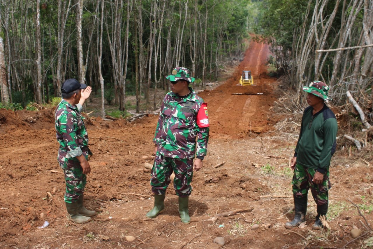 Komandan Satgas TMMD Reguler ke -122 Kodim 0425/Seluma Letkol Arh Dedy Hendaryatmoko, turun langsung tinjau perkembangan pembuatan jalan sepanjang 1.535 meter yang merupakan jalan sentral perkebunan, Desa Talang Sebaris Kecamatan air periukan, Kabupaten Seluma . Senin 14 Oktober 2024.