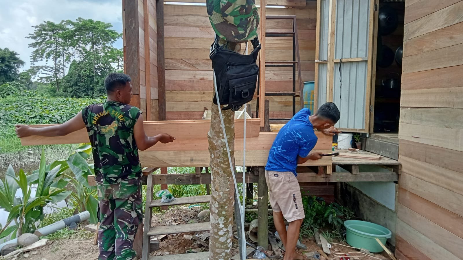 Terpantau pembangunan sarana fasilitas umum di sasaran yaitu dua unit MCK yang dikerjakan tahap demi tahap oleh anggota Satgas TMMD dibantu warga sampai dengan memasuki 28 persen pengerjaannya.