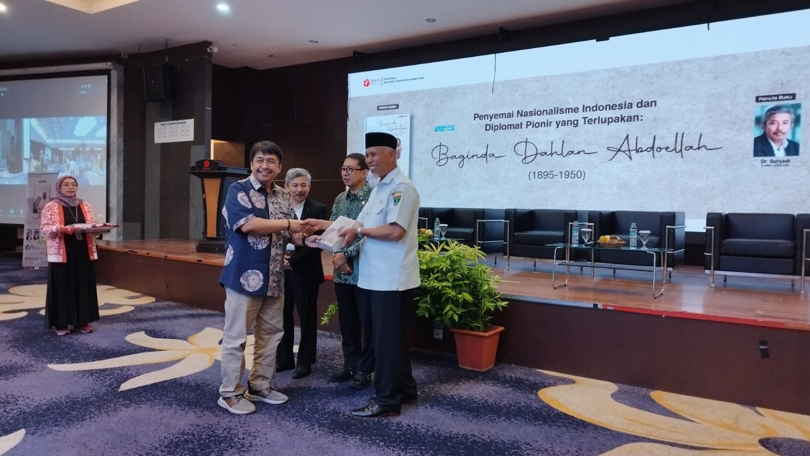 PADANG (UtamaPost)—Gubernur Sumatera Barat (Sumbar), Mahyeldi Ansharullah, memberi sambutan dalam acara bedah buku “Bagindo Dahlan Abdoellah; Penyemai Nasionalisme Indonesia dan Diplomat Pionir yang Terlupakan, yang ditulis oleh akademisi Universitas Leiden asal Sumbar, Dr. Suryadi. Dalam acara di Gedung Badan Riset dan Inovasi Nasional (BRIN) tersebut, Gubernur Mahyeldi berharap Bagindo Dahlan Abdoellah segera dianugerahi gelar Pahlawan Nasional.
