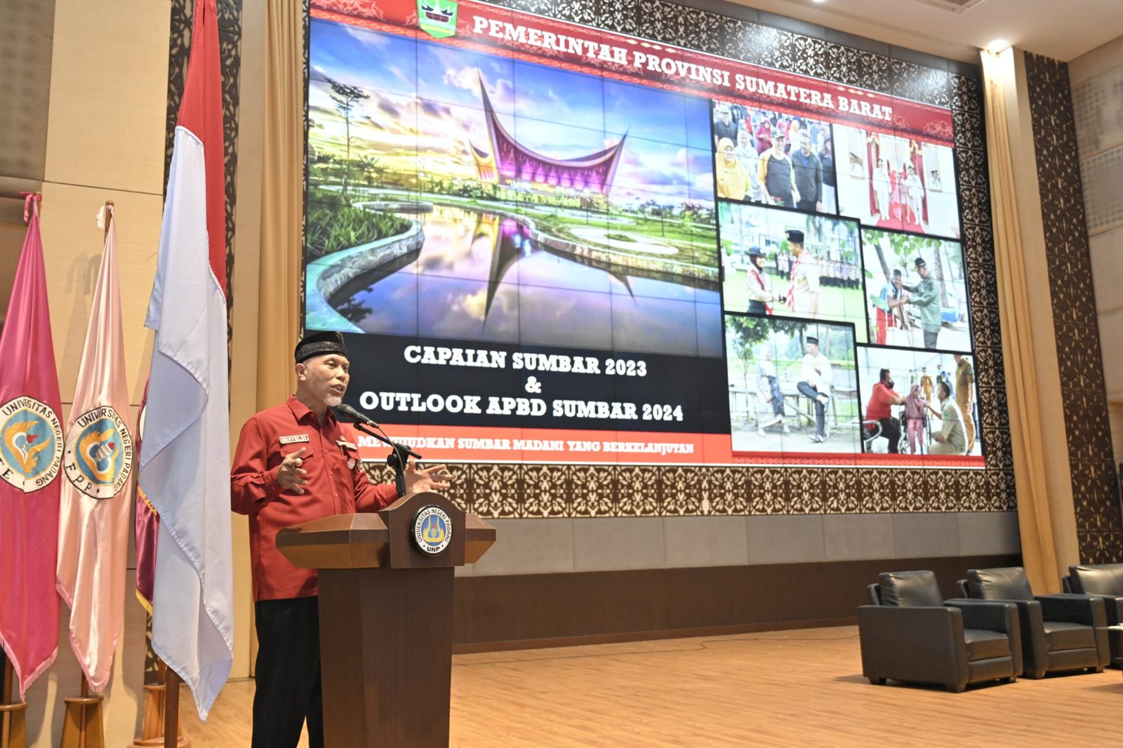 “Rekan-rekan mahasiswa memiliki tugas dan tanggung jawab untuk menjadi pemimpin di masa depan, yang bertepatan dengan perwujudan visi Indonesia Emas pada tahun 2024. Oleh karena itu, rekan-rekan sekalian perlu perbekalan yang cukup untuk menjadi seorang pemimpin,” ucap Gubernur dalam arahannya di Auditorium UNP.