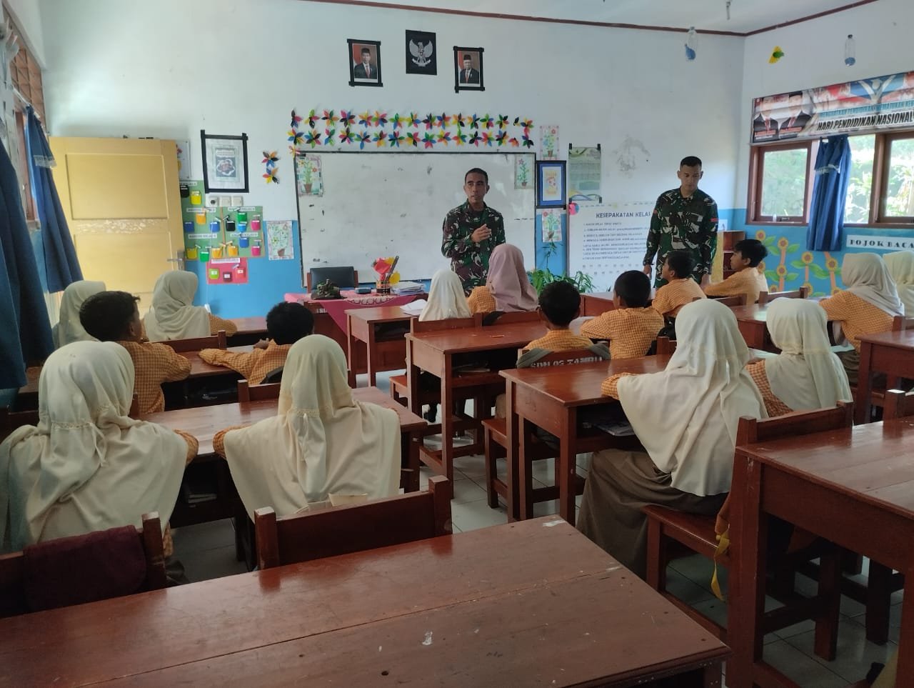 “Materi yang kita sampaikan dengan bahasa yang mudah dimengerti oleh siswa SD, Semoga pembekalan Wawasan Kebangsaan dan Cinta Tanah Air yang kami sampaikan dapat bermanfaat bagi Anak-anak, karena pendidikan merupakan hal yang sangat penting untuk mewujudkan kehidupan yang lebih baik di masa depan,” Ungkap Serda Suranto.