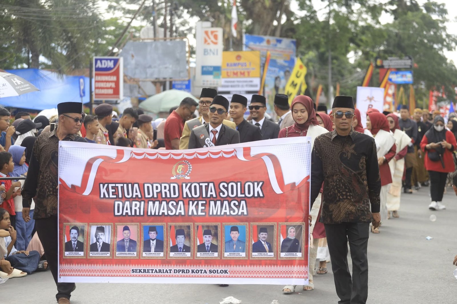 Solok, (Utamapost) – Pawai Alegoris pembangunan, yang digelar pada Selasa (19/08/2025) dijadikan momentum sebagai pengingat bagi seluruh masyarakat Kota Solok tentang siapa saja tokoh yang pernah memimpin di DPRD Kota Solok dari tahun 1971 hingga saat ini, dengan menampilkan nama – nama tokoh yang pernah memimpin di DPRD Kota Solok beserta masa bhaktinya.