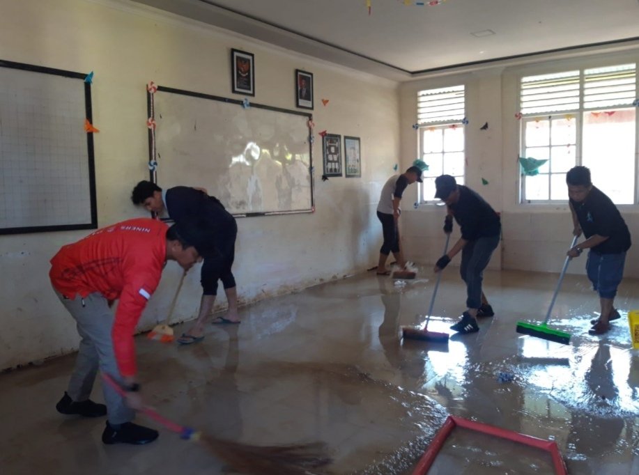 Tidak hanya merayakan HUT KORPRI secara seremonial, tetapi turut membantu saudara-saudara kita yang terdampak bencana. Ini adalah bentuk pengabdian kami sebagai aparatur yang harus hadir di garis terdepan, gotong royong ini difokuskan untuk membersihkan lumpur dan sampah yang terbawa arus banjir ke sekolah.