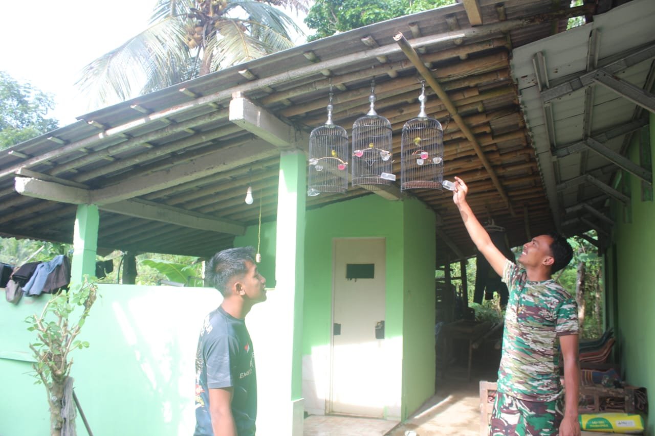 Di sela waktu istirahat, kicau merdu burung pleci yang digantung di dekat lokasi kerja menjadi pelepas penat bagi para prajurit. Suara burung yang riang menghadirkan suasana santai dan menyegarkan semangat sebelum kembali melanjutkan pekerjaan bersama warga.