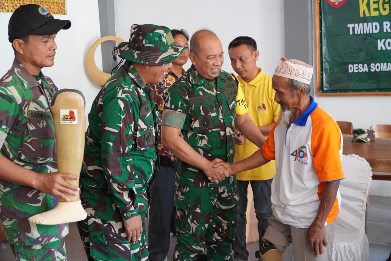 Kebumen – Kehangatan kemanunggalan TNI dan rakyat terasa kuat di Desa Somagede, Kecamatan Sempor, Kabupaten Kebumen, saat Tim Pengawas dan Evaluasi (Wasev) TMMD ke-127 Tahun Anggaran 2026 melakukan kunjungan peninjauan. Rombongan yang dipimpin Brigjen TNI Andiek Prasetyo Awibowo, S.I.P., M.Si., tersebut meninjau langsung berbagai sasaran pembangunan fisik sekaligus menyerahkan bantuan kaki palsu kepada warga penerima manfaat.