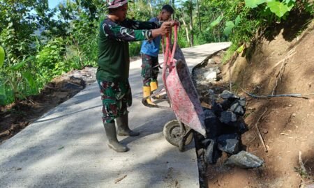 Kebumen – Semangat gotong royong terlihat jelas saat Satgas TMMD Reguler ke-127 Kodim 0709/Kebumen bersama warga memindahkan batu bronjong menggunakan angkong di...