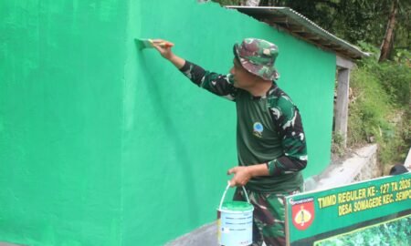 Kebumen – Kamis (05/03/2026), Satgas TMMD Reguler ke-127 Kodim 0709/Kebumen melaksanakan tahap finishing pengecatan dinding bangunan pipanisasi di Desa Somagede. Kegiatan ini...