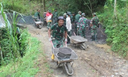 Bandung –Satgas TMMD Reguler ke-127 Kodim 0624/Kabupaten Bandung bersama masyarakat Desa Cipelah, Kecamatan Rancabali, melaksanakan kegiatan pengecoran jalan di titik 0-30, yang...