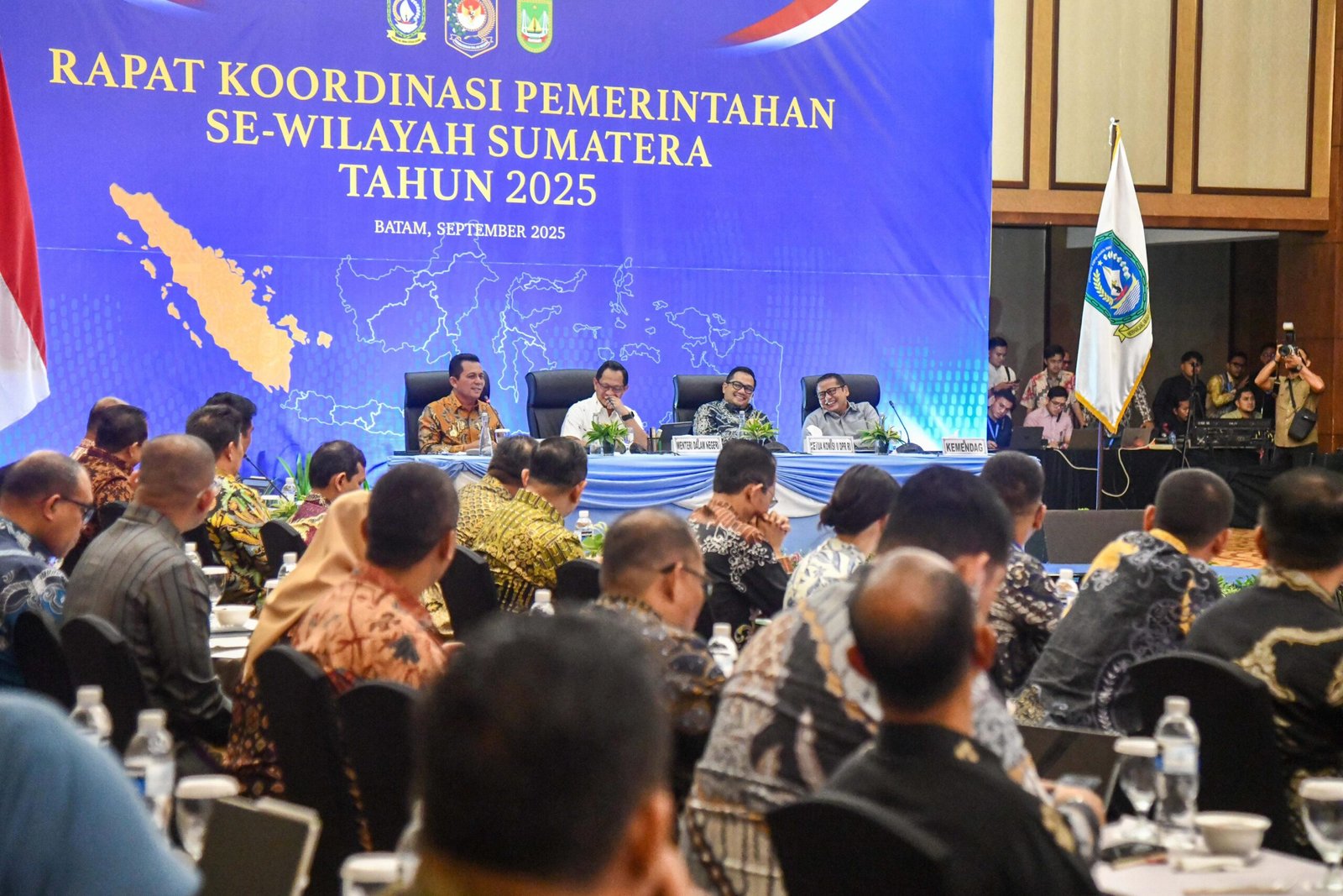 Rakor pemerintahan se-Sumatera yang dipimpin Mendagri tersebut turut menghadirkan Ketua Komisi II DPR RI, Rifqinizamu Karyasayuda dan Plt. Dirjen Perdagangan Luar Negeri, Tommy Andana sebagai narasumber. Acara ini juga diikuti oleh seluruh kepala daerah se-Provinsi Kepulauan Riuan secara daring.
