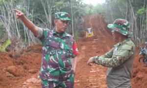 Komandan Satgas TMMD Reguler ke -122 Kodim 0425/Seluma Letkol Arh Dedy Hendaryatmoko, turun langsung tinjau perkembangan pembuatan jalan sepanjang 1.535 meter yang...