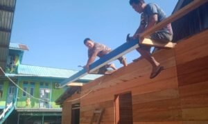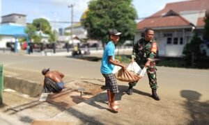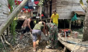TANA TIDUNG – Bersama-sama bergotong royong warga dan Satgas TMMD 122 Kopda Zery Bantu perbaiki jembatan Koramil-01/SSY sebagai akses penghubung, di Desa...