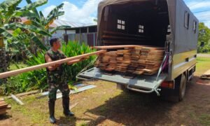 Tana Tidung – Tak kenal lelah, Satgas TMMD 122 Kodim 0914/TNT terus mobilisasi material papan kayu kesasaran fisik di desa Sebidai Kecamatan...