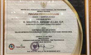 Padang, (Utamapost) – Gubernur Sumatera Barat (Sumbar), Mahyeldi Ansharullah, menjadi salah satu dari dua gubernur yang menerima Piagam serta Lencana Abdi Inovasi Desa...