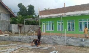 Lampun Selatan (Utamapost)-Satgas TNI Manunggal Membangun Desa (TMMD) Ke-120 Kodim 0421/Lampung Selatan bersama warga melaksanakan pembuatan rangka baja ringan untuk kanopi masjid...