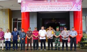 Dharmasraya (UtamaPost)~ Bupati Dharmasraya, Sutan Riska Tuanku Kerajaan menghadiri acara Apel Pergeseran Pasukan (Serpas) Personil Polri Pengamanan TPS, tahap pemungutan suara pemilu...