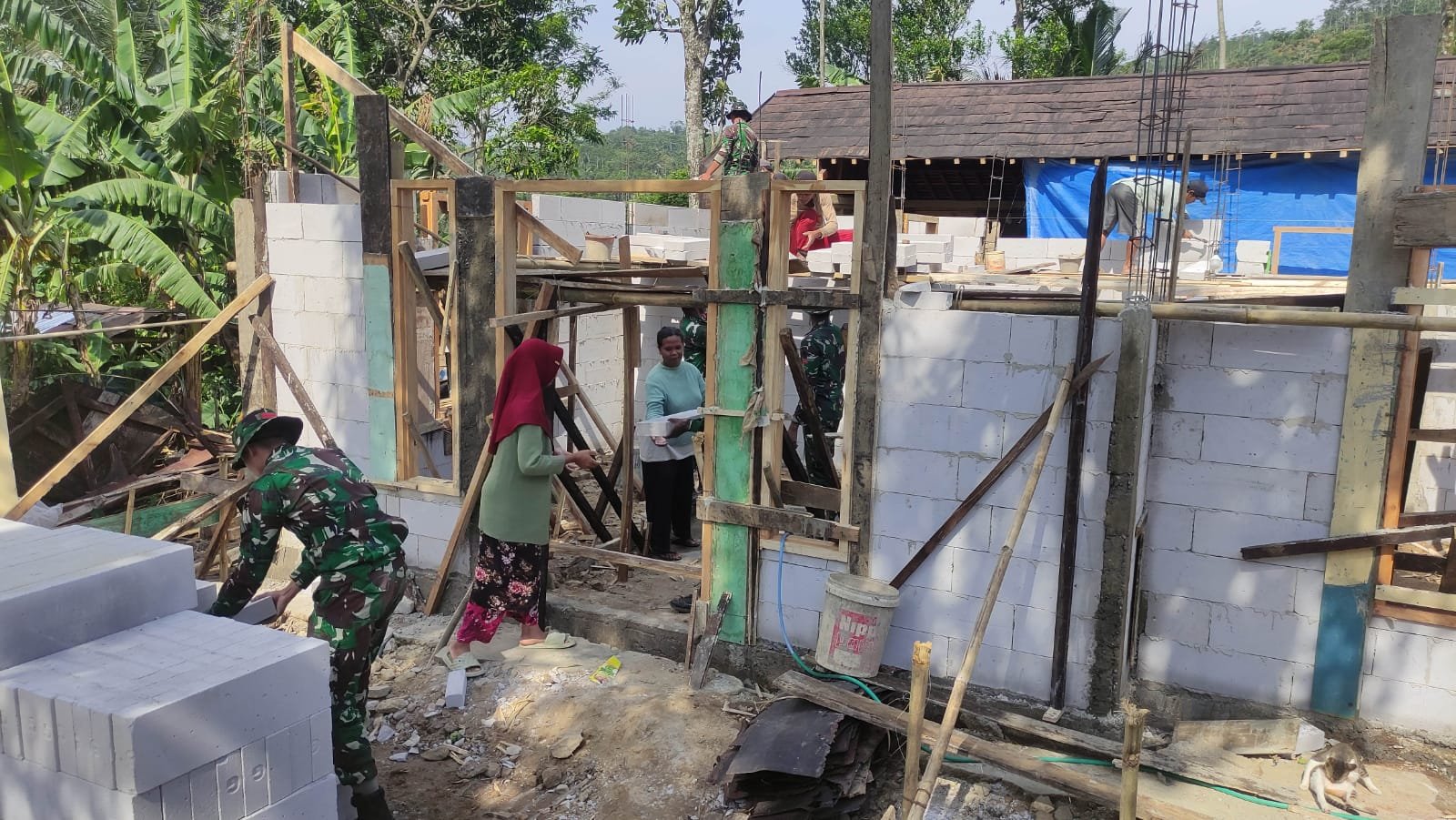 Kegiatan pembangunan RTLH dilaksanakan secara bertahap yang dikerjakan oleh Anggota satgas TMMD ke 122 bersama masyarakat secara bergotong royong.Terlihat Ibu Yuni (38) RT 03/RW 01 warga dukuh Sambeng tanpa rasa canggung bebaur diantara Satgas TMMD yang sedang bekerja membangun Rumah Tidak Layak Huni (RTLH) milik Bapak Karyono.