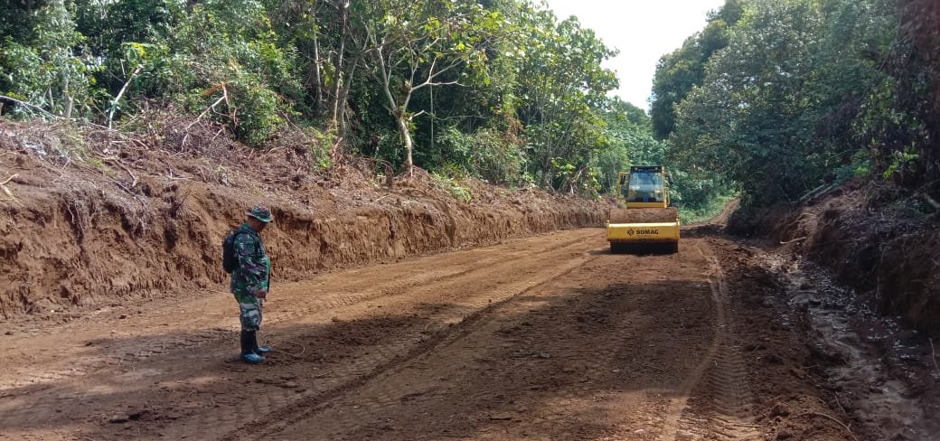 Kopda Roymardtulas tampak terlihat dilokasi sedang mengawasi dan mengarahkan alat yang sedang kerja untuk menyelesaikan target pekerjaan pembukaan jalan di Desa Sebidai.