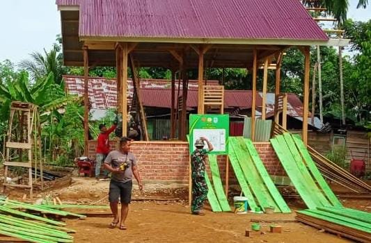 Kegiatan ini di nahkodai oleh Sertu Bambang bersama anggota Satgas lainnya bekerja dengan semangat untuk menyelesaikan pembangunan rumah tersebut tepat waktu.