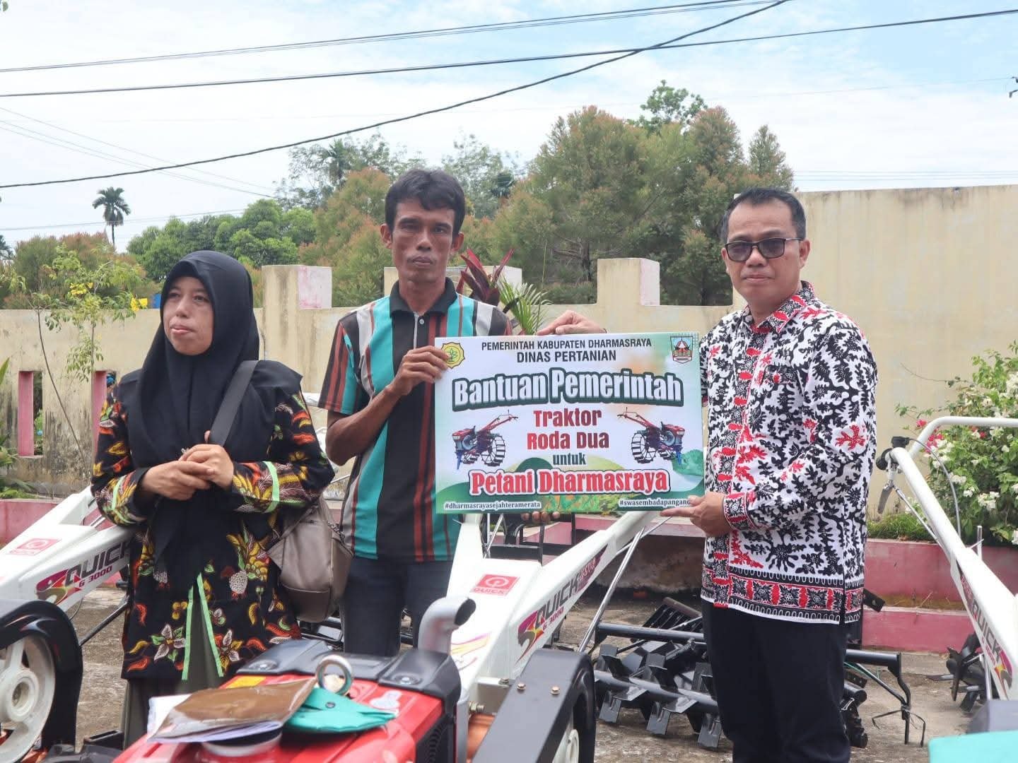 Dharmasraya (utamapost)- Pemerintah Kabupaten Dharmasraya melalui Dinas Pertanian menyalurkan sepuluh unit traktor roda dua kepada kelompok tani dari berbagai nagari di daerah itu. Penyerahan dilakukan oleh Asisten Perekonomian dan Pembangunan Sekretariat Daerah, Yefrinaldi, mewakili Bupati Dharmasraya, Annisa Suci Ramadhani, di halaman Kantor Dinas Pertanian Dharmasraya, Kamis (23/10/2025).