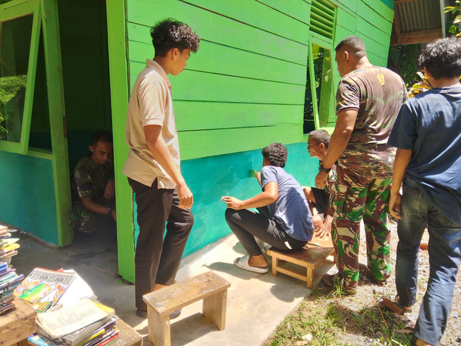 Merangin – Anggota Satgas TNI Manunggal Membangun Desa (TMMD) 122 Kodim 0420/Sarko berkolaborasi dengan pemuda setempat untuk melaksanakan kegiatan pengecatan Madrasah Darul Ulum Desa Bedeng Rejo Kecamatan Bangko Barat Kabupaten Merangin, Kegiatan ini kordinatori oleh Mayor Inf Aziz.