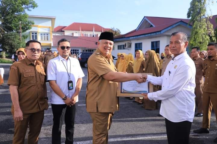 Pimpin Apel Pagi Lingkup Pemko Solok, Wako Zul Elfian Serahkan Penghargaan dan Santunan