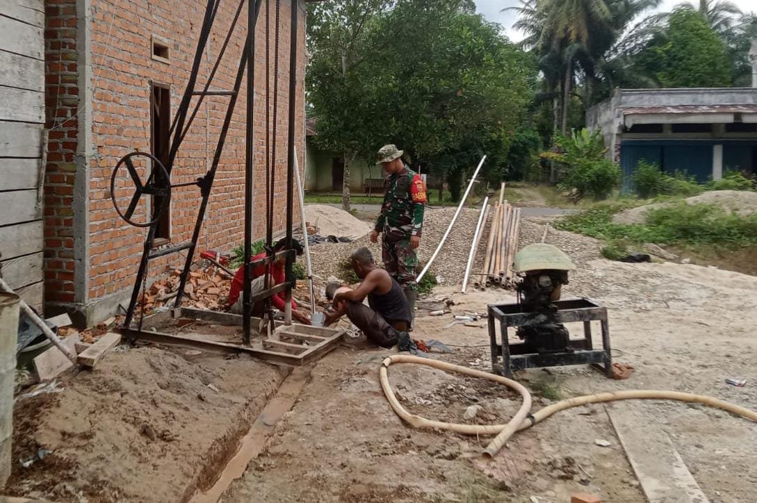 Merangin – Pekerjaan pembangunan sumur bor di Masjid Baitussalam Desa Bedeng Rejo terus dikebut oleh Satgas Tentara Manunggal Membangun Desa (TMMD) ke-122 Kodim 0420/Sarko. Sumur bor ini ditujukan untuk menyediakan pasokan air bersih untuk masjid dan warga Desa Bedeng Rejo Kecamatan Bangko Barat Kabupaten Merangin, untuk menunjang kebutuhan ibadah dan kehidupan sehari-hari.