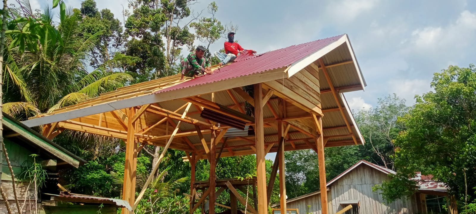 Dikoordinir oleh Lettu Inf Limbong, Satgas TMMD ke 122 Kodim 0420 Sarko bersama warga setempat melanjutkan pekerjaan dengan melakukan pemasangan atap seng pada rumah Yabani. Pemasangan atap ini merupakan salah satu tahapan penting dalam proses pembangunan rumah yang diharapkan dapat memberikan kenyamanan bagi keluarga Yabani, terutama pada musim hujan.