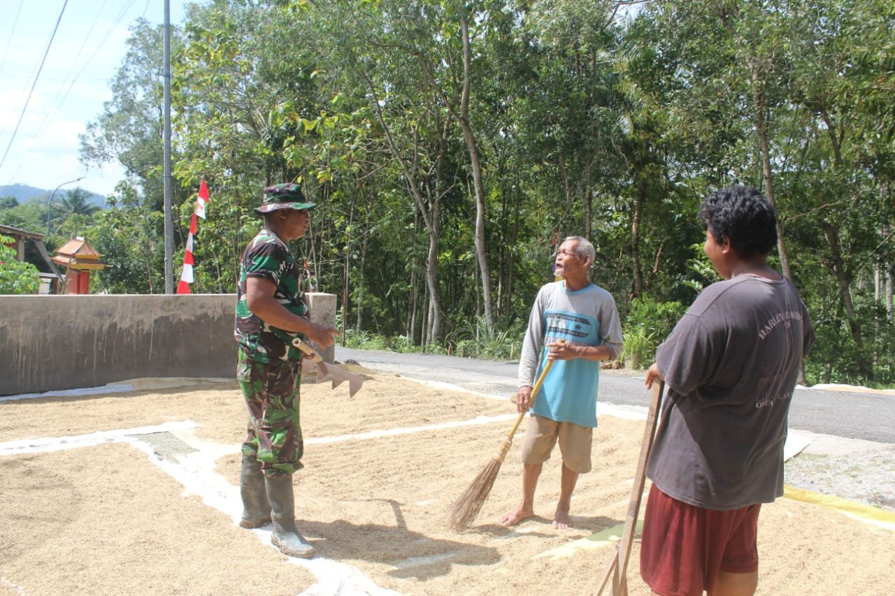 Kebumen – Hamparan padi yang dijemur di halaman rumah warga Desa Somagede menjadi pemandangan khas di musim panen. Di tengah kesibukan program TMMD Reguler ke-127 Kodim 0709/Kebumen, seorang prajurit tampak berhenti sejenak dari pekerjaan fisik dan menghampiri warga yang sedang menjemur padi, Jumat (06/03/2026).