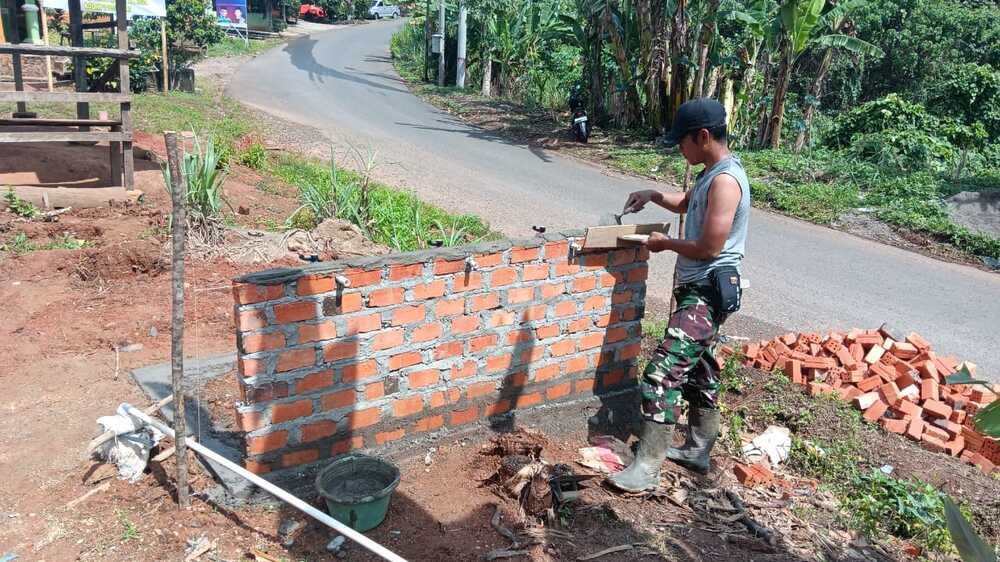 EMPAT LAWANG, – Sentuh 41 persen, anggota Satgas TMMD ke-122 Kodim Lahat kini membangun tempat pancoran air dekat dengan sasaran fisik MCK, di Desa Lampar Baru, Kecamatan Talang Padang, Kabupaten Empat Lawang.