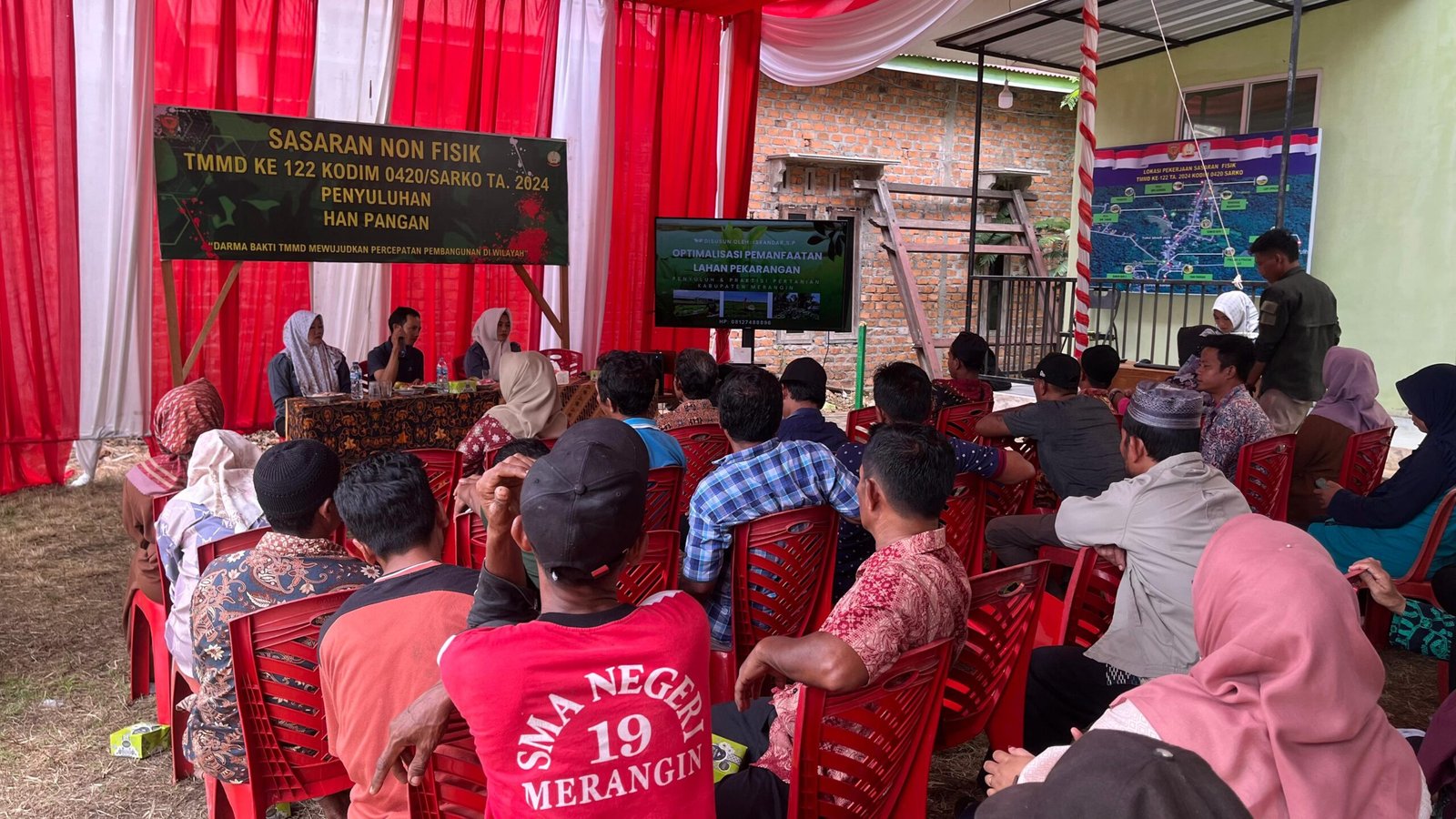 Merangin – Dalam rangka mendukung pelaksanaan kegiatan Tentara Manunggal Membangun Desa (TMMD) ke-122 Kodim 0420/Sarko, Dinas Tanaman Pangan dan Hortikultura Kabupaten Merangin Jumat (11/10/2024) mengadakan penyuluhan ketahanan pangan dengan tema “Pemanfaatan Lahan Pekarangan Rumah untuk Ketahanan Pangan” pada masyarakat di Desa Bedeng Rejo.