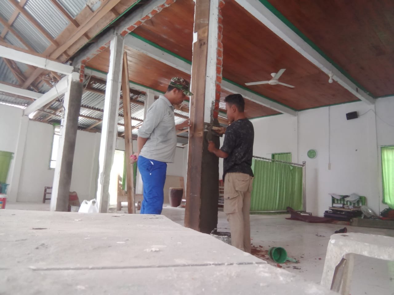 “Sebenarnya tidak banyak lagi pekerjaannya akan tetapi perlu ditekan yakni sentuhan hasil akhir, apalagi ini merupakan Rumah Allah senantiasa baik, bersih dan terlihat rapi.
