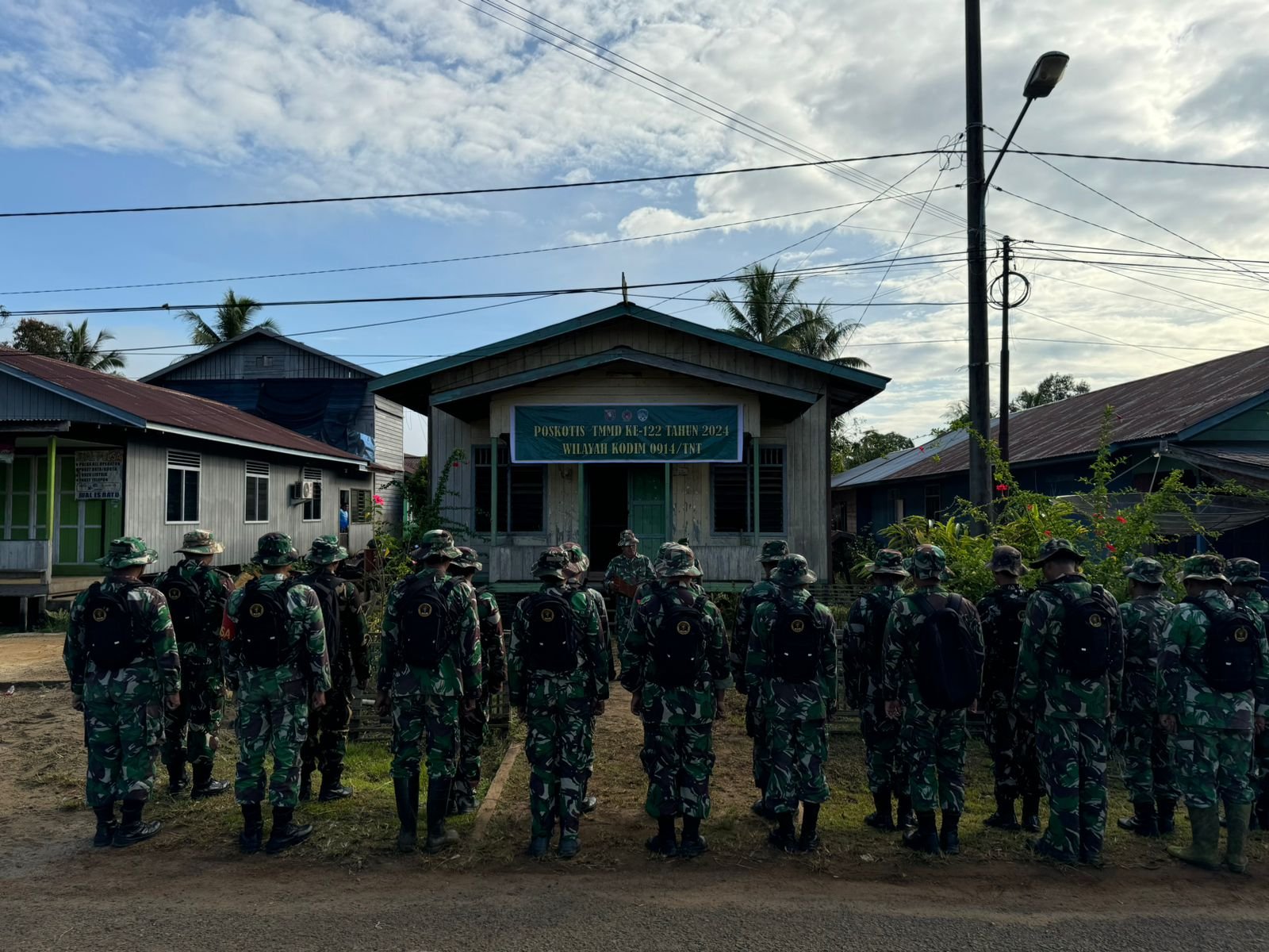 Apel pagi ini bertujuan untuk mengecek kesiapan seluruh personel Satgas dan warga juga untuk melakukan pembagian tugas pada masing-masing bagian. Kegiatan apel pagi ini dipimpin langsung oleh Perwira Seksi Operasi (PasiOps) Kodim 0914/TNT Lettu inf.Subadi Prasetyo.